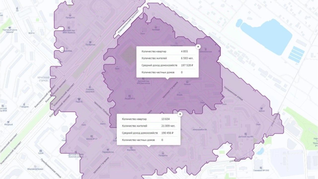 Линия домов: первая;Кол-во жителей (зона 5 мп): 5965 чел;