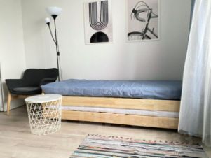 В квартире установлены стиральная машина, духовка, микроволновка и все необходимое для жизни. При необходимости кровать раскладывается в две одноместные кровати (можно сдвинуть в двухместную). Большой вместительный шкаф.