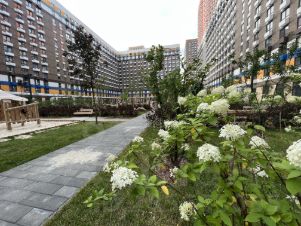 Внутренняя зелёная территория для прогулок и отдыха закрывается на ключ.