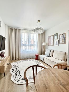 Стильные, уютные и функциональные апартаменты с дизайнерским интерьером в современном доме в районе м. Некрасовка. Рядом расположено живописное озеро для прогулок и времяпрепровождения. На близлежащей территории расположено много магазинов и супермаркетов, в том числе и круглосуточных. Хорошая транспортная доступность до метро Некрасовка всего 10 минут на общественном транспорте или 20 минут пешком. Дом расположен недалеко от СВХ, что позволит быстро добираться до центра Москвы на личном транспорте. Во дворе дома, а также на смежных парковках много парковочных мест. В наших апартаментах есть все необходимое для комфортного проживания: кондиционер, холодильник, варочная панель, СВЧ-печь, чайник, кофеварка, разнообразная посуда, пылесос, стиральная машина, фен, утюг и не только. Два больших телевизора 55 дюймов со СМАРТ-ТВ. В гостиной имеется просторный раскладной диван, тумба, кофейный столик, а умная колонка дополнит Ваш досуг любимой музыкой. Смеситель на кухне - с встроенным фильтром для питьевой воды. Имеется мини-бар с напитками и закусками за дополнительную цену, а также совершенно бесплатная чайная станция. Зона прихожей отделена от гостиной реечной перегородкой; в прихожей - банкетка, зеркало и шкаф. Спальня с большой двухспальной кроватью (спальное место 160 см), вместительным шкафом для одежды. Гостям предоставляется постельное белье, полотенца, а также средства гигиены - мыло, шампунь. Санузел с ванной, раковиной, унитазом, стиральной машиной и 2 шкафчиками. Проведён высокоскоростной интернет, есть WiFi. Круглосуточная поддержка гостей - мы всегда на связи.