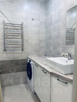 Раздельный санузел: ванная комната 4 кв.м, встроенная стиральная машина и много ящичков для хранения вещей.
