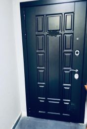 Надежная входная дверь с большим зеркалом и хорошей шумоизоляцией.