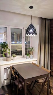Стильный и современный интерьер: многоуровневое освещение, магнитно-меловая стена на кухне, широкие подоконники, балкон утеплён и отделан под кабинет, тёплый пол на кухне, балконе и в ванной,