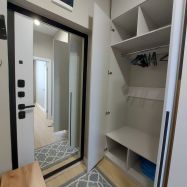 Сдаётся светлая и уютная квартира в новом доме с современным ремонтом. Дом комфорт класса с закрытой территорией. Парковка открытая во дворе. В подъезде просторный холл, на этаже есть место для хранения велосипедов. На первом этаже пункты выдачи Озон, Вайлдберриз, Яндекс маркет, продуктовый магазин. В квартире есть вся необходимая мебель и техника: стиральносушильная машина, электрический полотенцесушитель, холодильник, варочная поверхность, духовка, СВЧ, вытяжка, кондиционер, телевизор, утюг, пылесос. В кухне-гостинной комфортный раскладной диван, продуманные места хранения во всех комнатах.