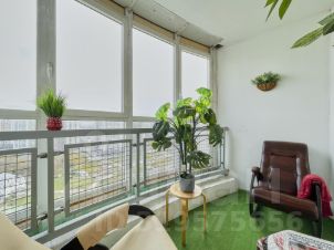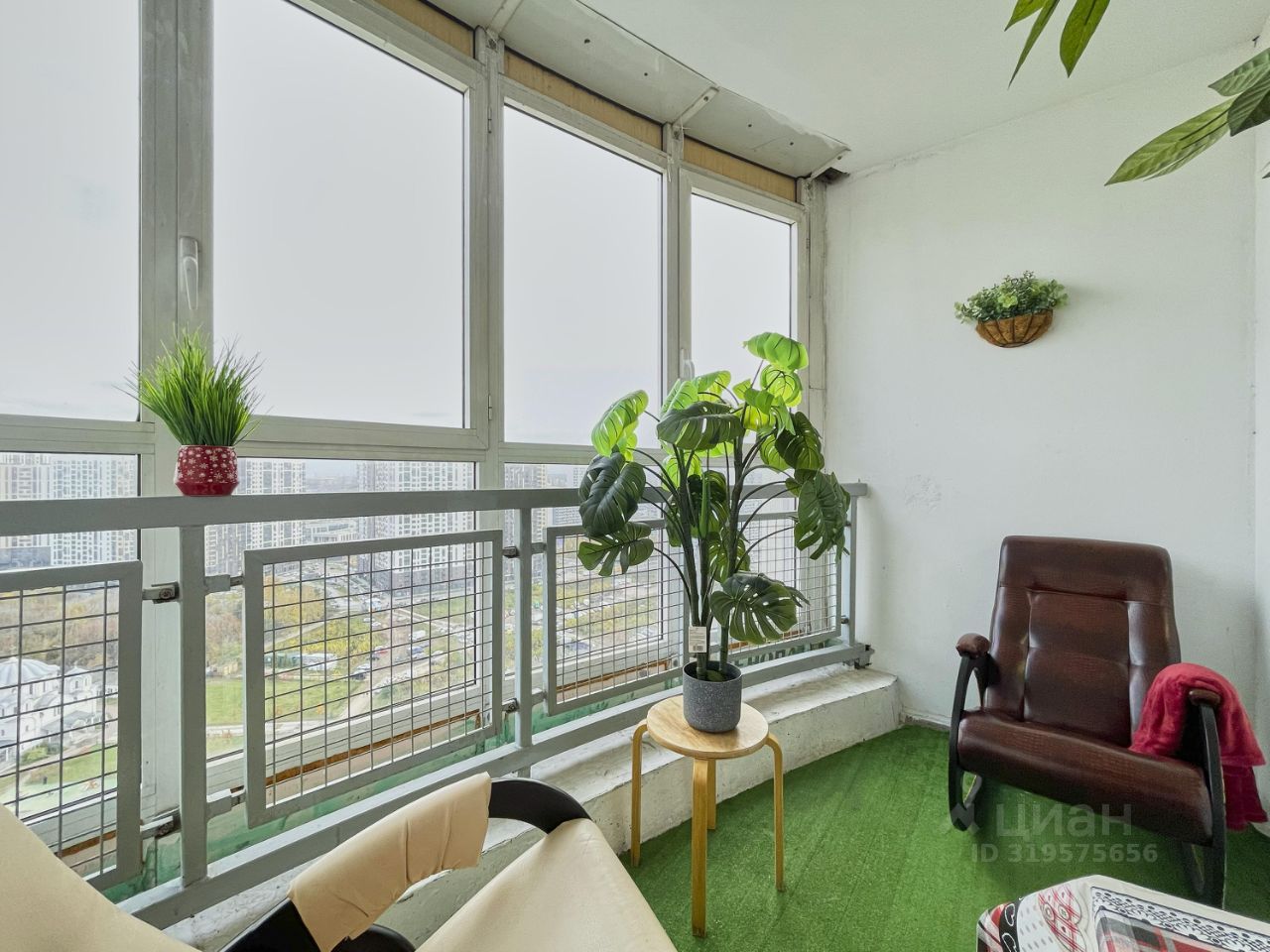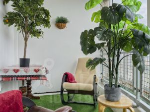 большой балкон с удобными креслами качалками