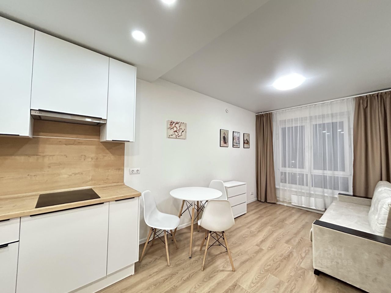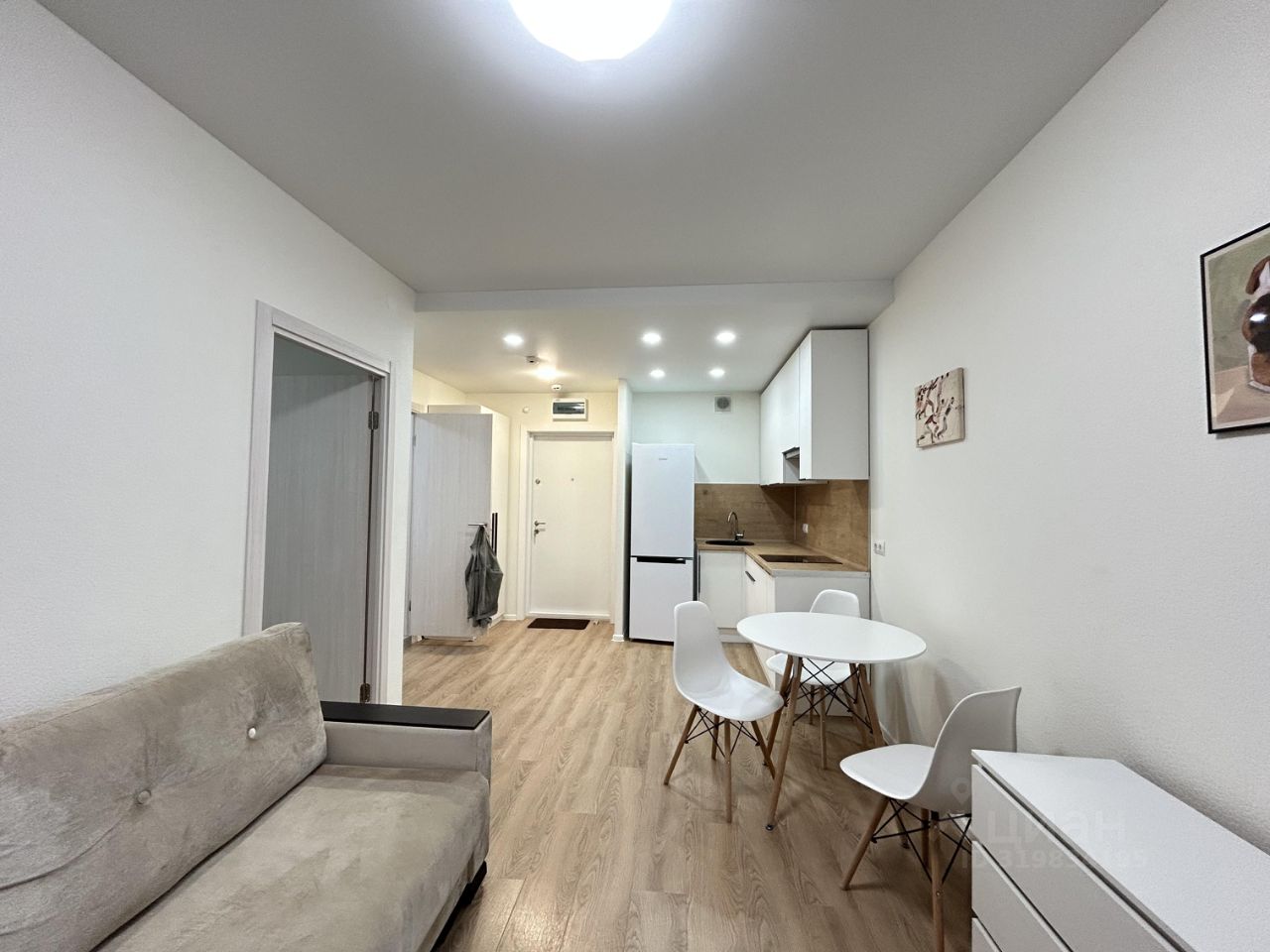 - кухня-гостиная со встроенной техникой, холодильник, диван