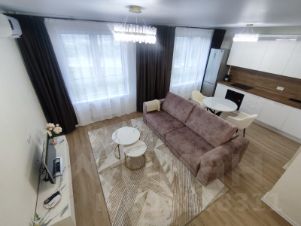 Сдаётся на длительный срок очень уютная квартира-евродвушка с дизайнерским ремонтом. Вся мебель и техника новые. Спальня: большая кровать с ортопедическим матрасом "ORMATEK", две прикроватные тумбы. Гостиная: раскладывающийся диван, телевизор, кухонный гарнитур. Есть небольшая рабочая зона со столом. Подключен интернет. Кухня со всей необходимой бытовой техникой: посудомоечная машина, холодильник. Установлены фильтры для воды. Ванная со стиральной машиной. В холле зеркальный шкаф. ГАРДЕРОБНАЯ комната. Балкона нет, нельзя курить. Развитая инфраструктура: магазины, кафе, поликлиника, бассейн, рядом парк. Квартира идеально подходит одному человеку или семейной паре без детей или с ребенком школьного возраста.Строго без животных. Прекрасная хозяйка. Стоимость обсуждаем.