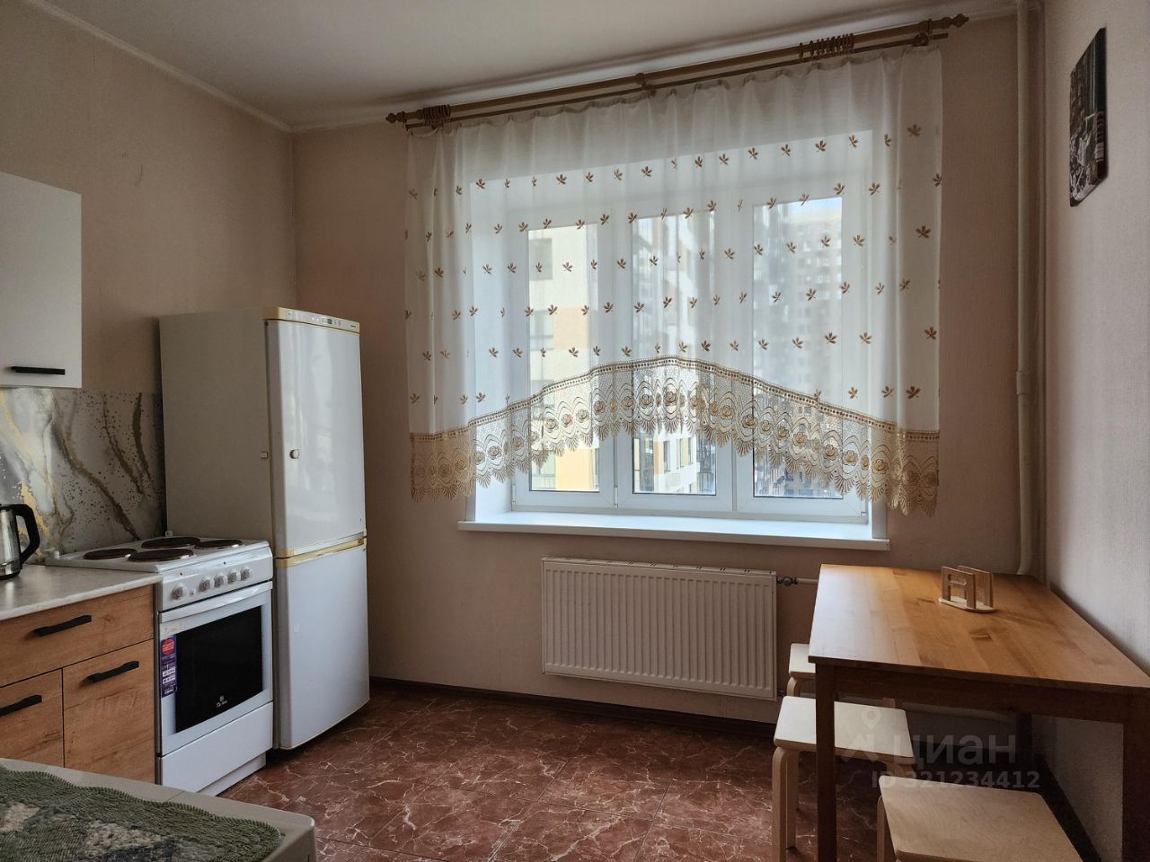 Квартира подготовлена для заселения, в ней есть все необходимое для проживания: в комнате - кровать и матрас 160Х200 (новые), туалетный столик с зеркалом (новые), стойка для одежды с зеркалом; на кухне - кухонный гарнитур (новый), электроплита, холодильник, чайник (новый), миксер, стол с табуретами; в санузле - стиральная машина, фен, электрический полотенцесушитель; в коридоре - гардеробная система (новая), гладильная доска, сушилка для одежды, пылесос, утюг, стойка для обуви (новая). Шкаф или иная мебель обсуждаются отдельно.