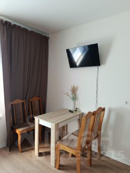 В студии выполнен качественный евроремонт, установлена современная мебель на кухне и в комнате. Апартаменты полностью оснащены всей необходимой бытовой техникой: есть холодильник, телевизор и стиральная машина. Ванная комната оборудована душевой кабиной и совмещена с санузлом.