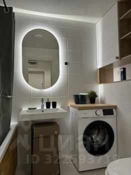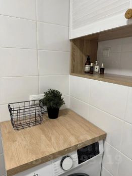 В ванной: стиральная машина, зеркало с подсветкой, встраиваемый шкаф, мягкий коврик, дозаторы.