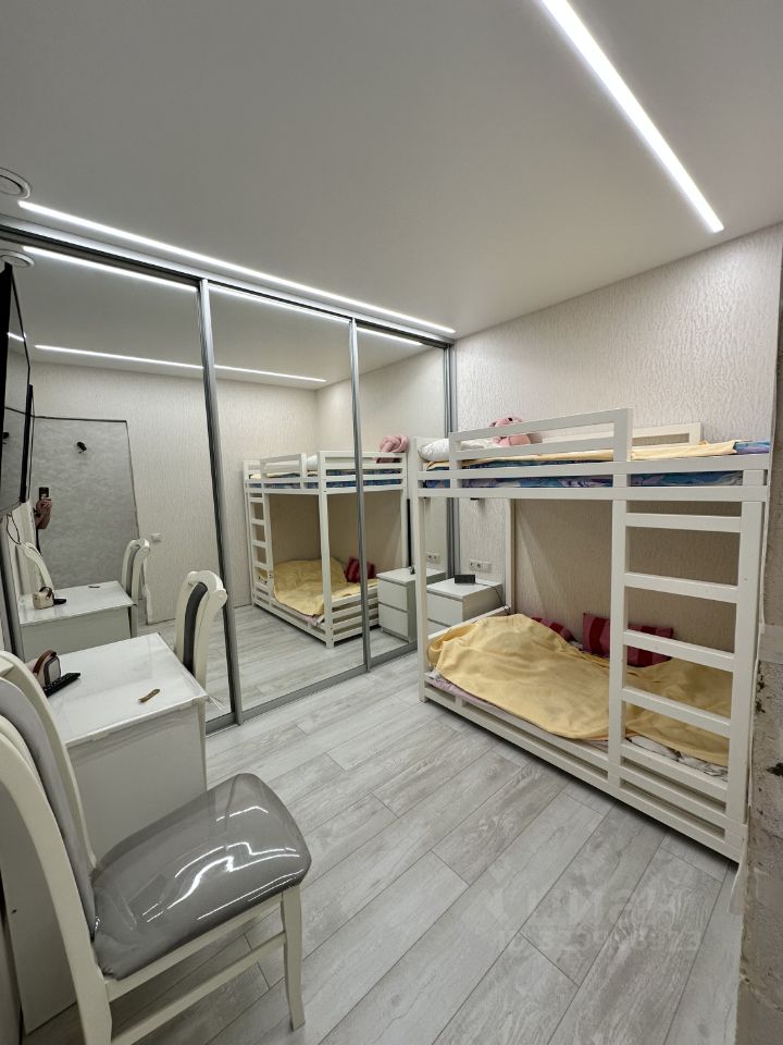 в комнатах 3 вида света что удобно и комфортно , также в комнате стоит двухъярусная кровать , тумба , столик и два стула , также шкаф купе расположен на всю длину комнаты , достаточно вместительный . Зеркала придают комнате уют и тепло . В ванной комнате стоит стиральная машинка , в другой комнате кровать 140/200 , тумба , зеркальный шкаф купе . В кухне посудомоечная машинка , холодильник , индукционная варочная панель , вытяжка, обеденный стол и стулья , кухонный гарнитур . На каждом окне установлены замки для безопасности детей . Двор полностью огорожен , видео дама фон на своем устройстве .
