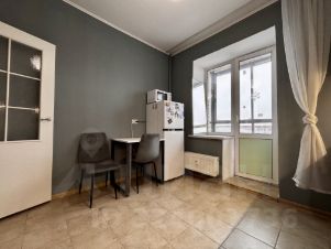 Одна светлая большая комната площадью 15.5 метров с хорошим ремонтом и мебелью. Просторная и функциональная кухня площадью 9 метров, совмещенный санузел. Балкон 3х метровый с панорамным остеклением. На кухне стоит фильтр для воды трёхступенчатый обратного осмоса