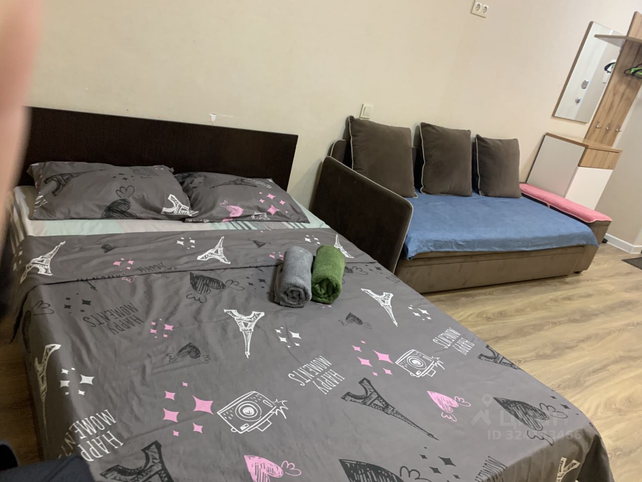 Спальные места для 4 гостей большая комфортная кровать и раскладной диван.
