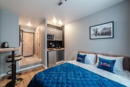 Апартаменты оснащены всем необходимым для комфортного проживания как на короткий, так и на длительный срок: Бесплатный Wi-Fi, мягкая мебель, постельное белье, необходимая техника.