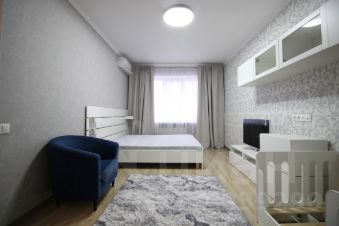 Квартира оборудована кухней со встроенной техникой, в комнате двуспальная кровать, большой шкаф для хранения вещей, кондиционер. Санузел совмещенный, водонагреватель. Комфортный 7-й этаж. Застекленная лоджия.