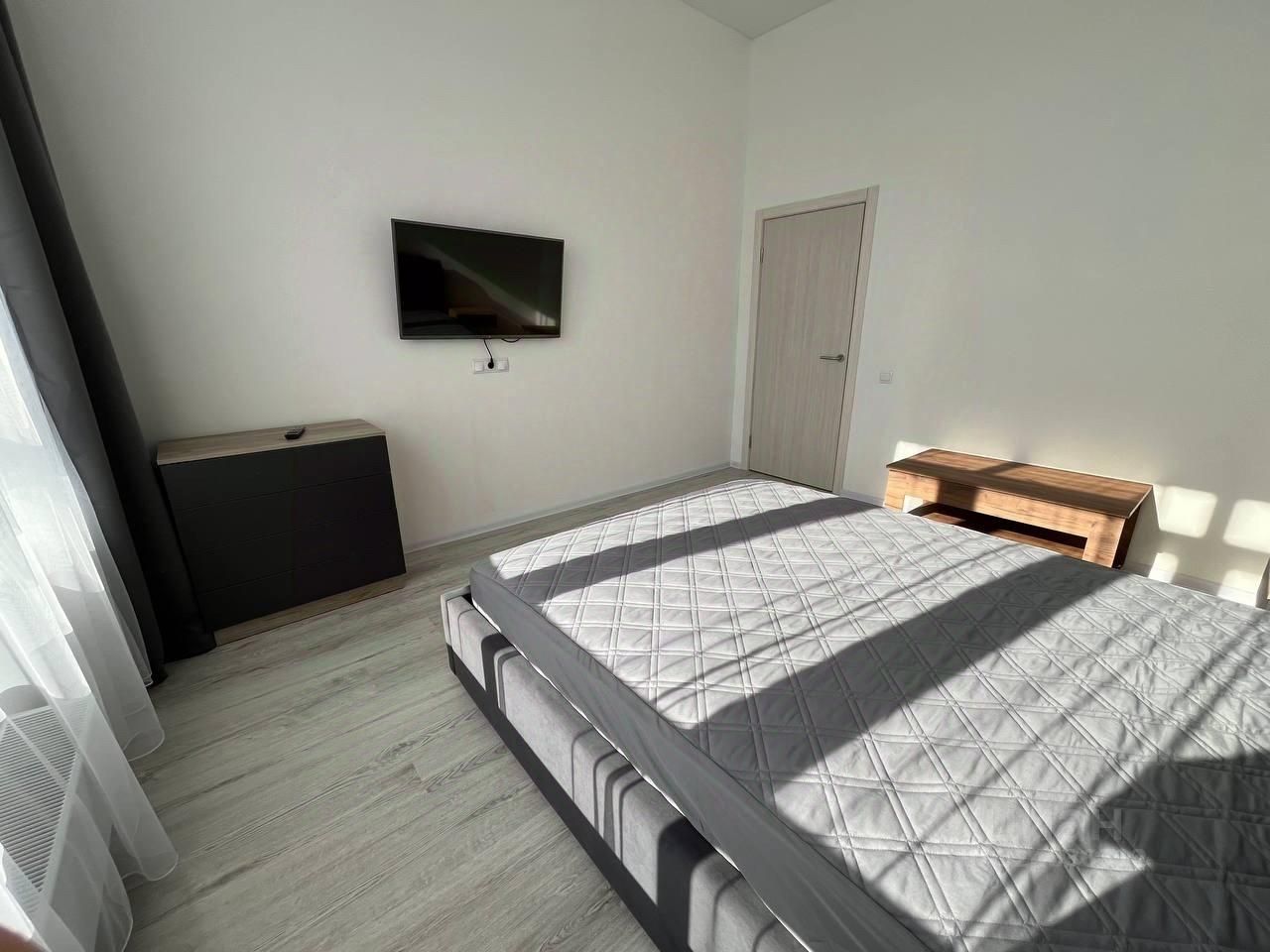 двуспальная кровать, тумбы прикроватные, комод, стол для работы (можно сложить и использовать как журнальный), телевизор, кондиционер;