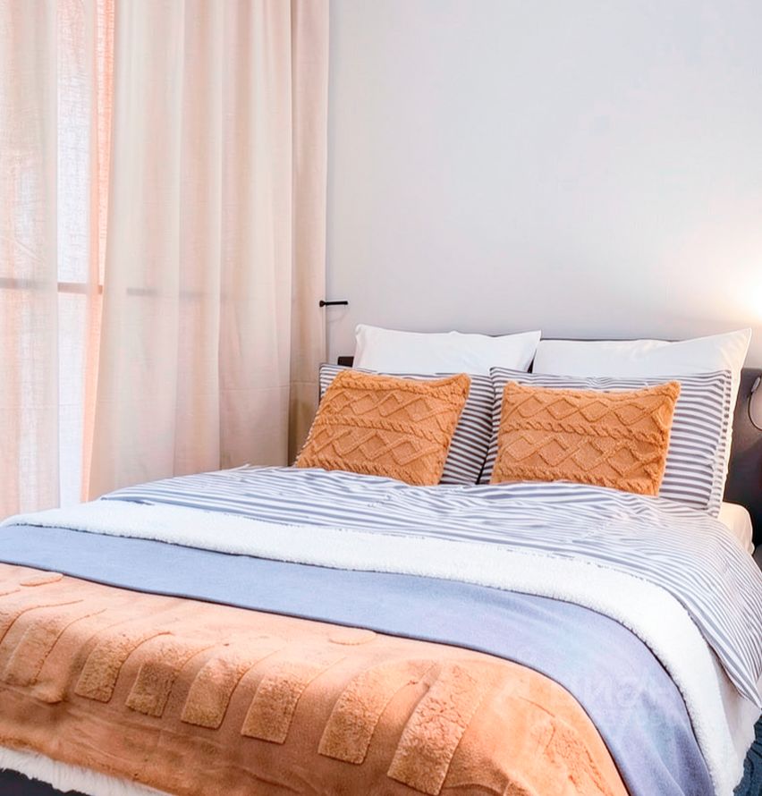 - Двуспальная кровать с хорошим матрасом и чистым постельным бельём позволит полноценно выспаться