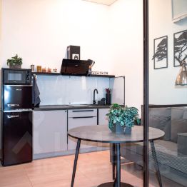 - Кухня, оснащённая необходимым набором посуды и столовых приборов, небольшой, но вместительный холодильник с морозильной камерой, микроволновая печь, чайник. С заботой о вашем комфорте предоставляются: чай, сахар, соль, специи