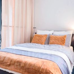 - Двуспальная кровать с хорошим матрасом и чистым постельным бельём позволит полноценно выспаться