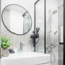 - Душевая кабина, предметы гигиены: шампунь гель для душа, зубная щётка, полотенца. В распоряжении так же фен, утюг, гладильная доска, сушилка.