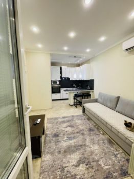 Квартира с евроремонтом, что обеспечивает комфорт и удобство для проживания. В наличии вся необходимая мебель как на кухне, так и в комнате. Из техники в вашем распоряжении кондиционер, холодильник, телевизор и стиральная машина. В санузле установлена душевая кабина, а окна выходят во двор, что гарантирует тишину и спокойствие.