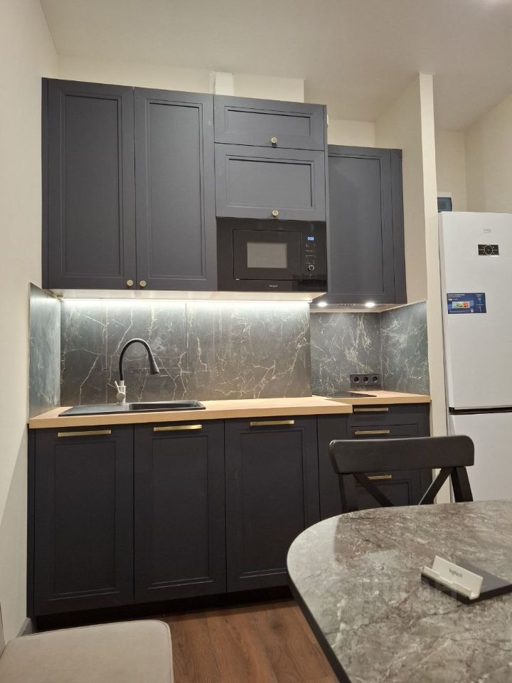 В квартире выполнен свежий евро ремонт, в ней ещё никто не жил, мебель и техника новые. Две спальни и гостиная-кухня. Комнаты изолированные, что обеспечивает комфорт и приватность. Установлен кондиционер, а также имеются вместительные шкафы для хранения вещей.