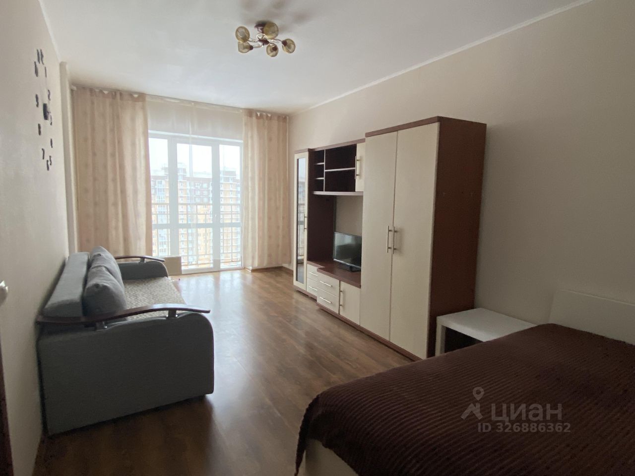 Большая комната и кухня оборудованы всей необходимой мебелью и техникой - все, что нужно для комфортной жизни. В квартире застеклённый балкон, проведен интернет. Благоустроенный двор.