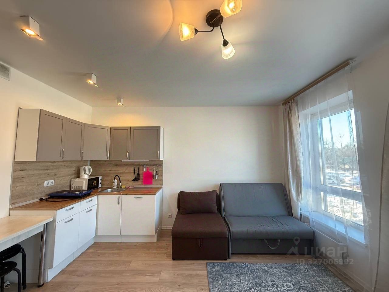 В квартире есть вся необходимая для жизни мебель и техника-стиральная машинка, холодильник, микроволновая печь, кухонный гарнитур, шкаф для хранения одежды, два раскладных дивана.