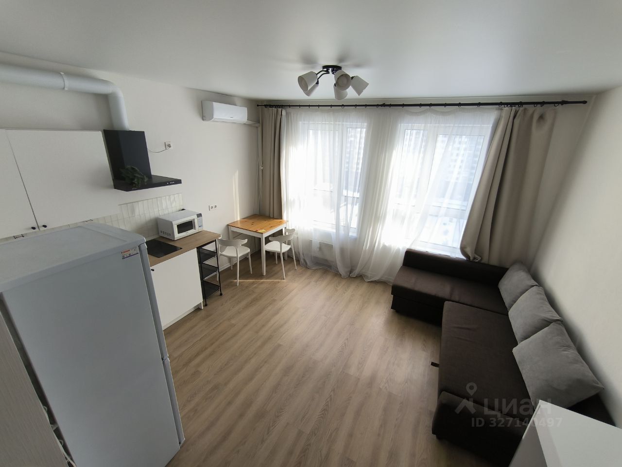 Интерьер квартиры выполнен с использованием высококачественных материалов. В комнате и на кухне есть необходимая мебель. Для вашего комфорта установлены кондиционер, холодильник, телевизор и стиральная машина. Просторная кухня площадью 10 кв. м позволяет с удобством готовить и принимать гостей. В совмещённом санузле установлена душевая кабина, что делает его использование более удобным.