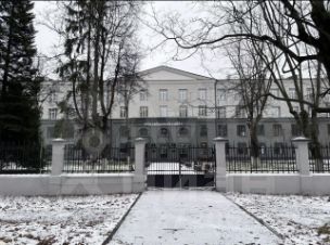Во дворе парк с вековыми деревьями .