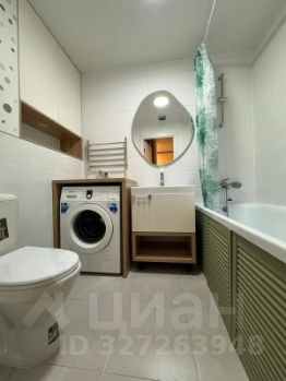 Ванная комната совмещенная, оснащена ванной, раковиной и стиральной машиной. В квартире можно проживать с детьми и питомцами.