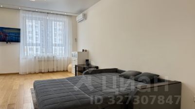 В другой зоне расположен раскладной диван. Размер 200х170. Для двоих человек достаточно места для сна. Так же имеется: кондиционер, телевизор, шкаф и комод для хранения вещей. В дополнение журнальный столик. Напольное покрытие паркетное. Окно размера plus size. Два радиатора для отопления.