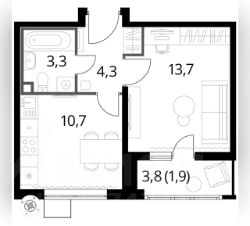 Общая площадь 33,9 м.