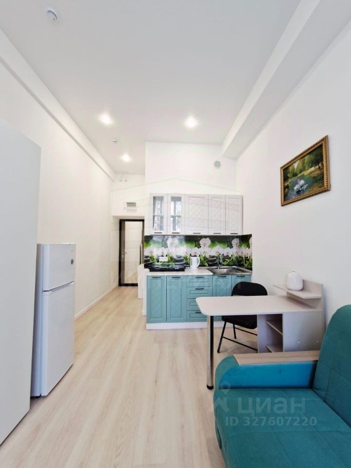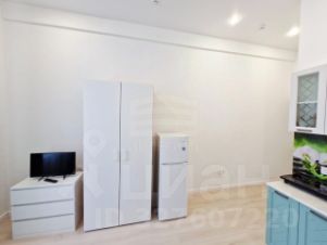 Уютная студия с мебелью и техникой.