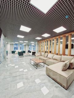При входе резиденты и их гости попадают в стильное лобби с ресепшеном, а также лаундж-зону. Стильный интерьер в светлых тонах создает домашнюю уютную атмосферу и в то же время подчеркивает статус комплекса.