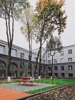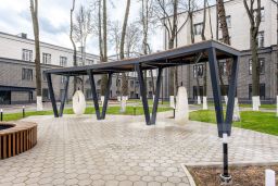 На огороженной территории находится красивый парк с высокими вечнозелеными деревьями. Здесь оборудованы зоны отдыха и детская площадка, где вы и ваши гости сможете комфортно проводить время. Также есть парковка, а внутри здания предусмотрено место для хранения колясок и детского транспорта.