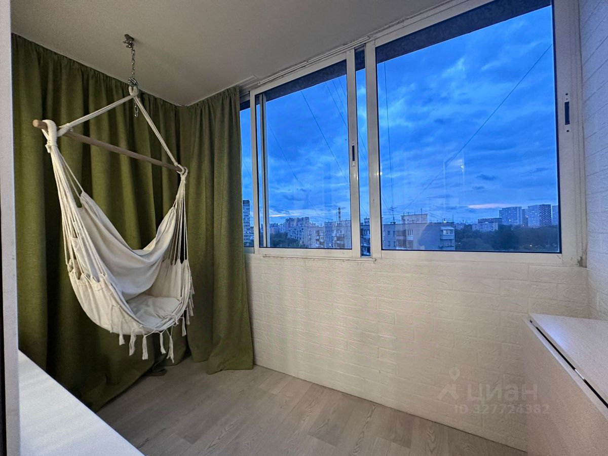 В квартире просторный хол, большая гостиная с выходом на балкон с качелей, спальня, гардеробная и кухня.