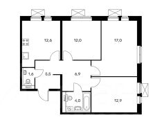 12,6 м²