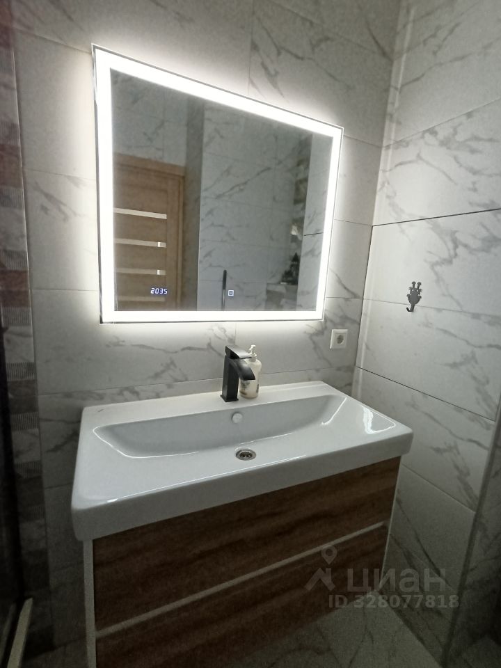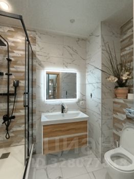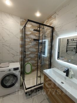 Оборудована душевой кабиной с тропическим душем. Зеркало с подсветкой. Так же система теплый пол и полотенцесушитель с регулятором мощности и таймером.