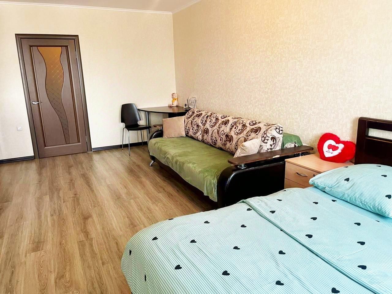 В квартире могут расположиться до 4 человек. В спальне есть двуспальная кровать и диван-кровать.