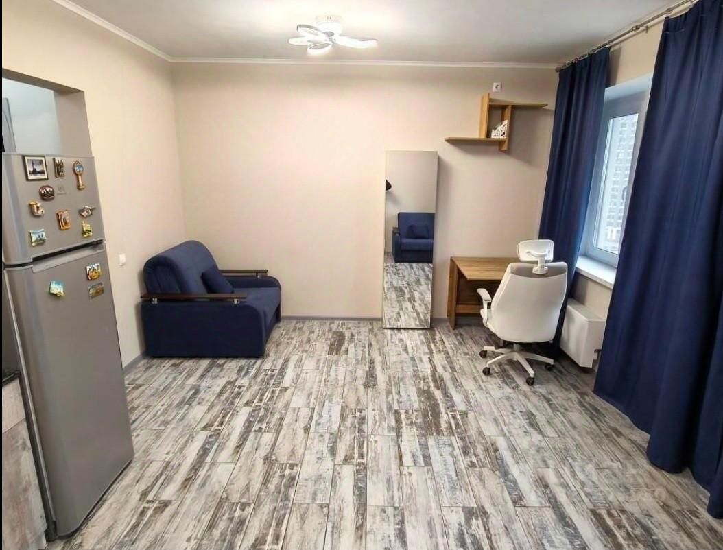 Сдается уютная студия площадью 27 кв. м на 9 этаже. Окна выходят на улицу.