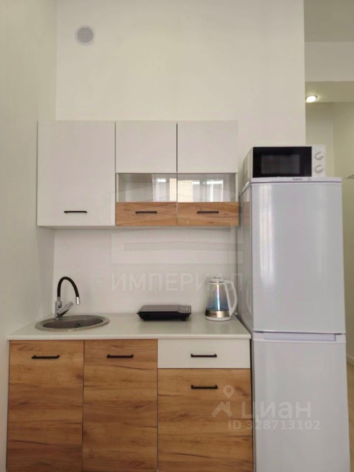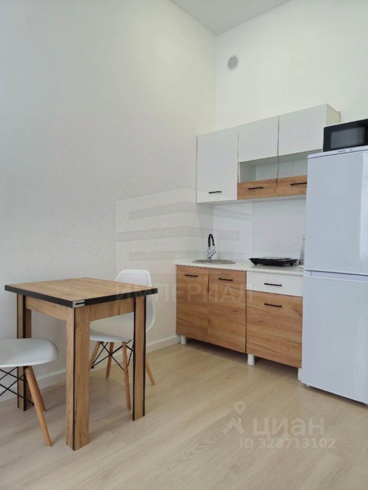 Уютная студия с мебелью и техникой.