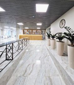 При входе резиденты и их гости попадают в стильное лобби с ресепшеном, а также лаундж-зону. Стильный интерьер в светлых тонах создает домашнюю уютную атмосферу и в то же время подчеркивает статус комплекса.