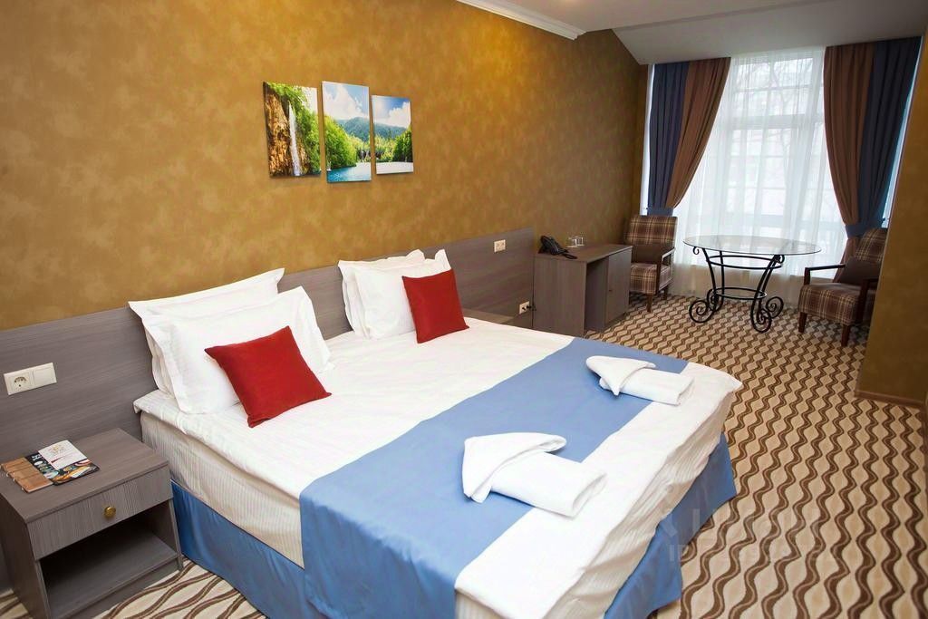Уютный номер для тех, кто ценит комфорт за разумные деньги. Номер оборудован одной большой двуспальной кроватью с ортопедическим матрасом (или по запросу двумя односпальными), собственной ванной комнатой с душевой кабиной и укомплектован удобной мебелью (шкаф для одежды, багажница, прикроватные тумбочки со светильниками, небольшое рабочее место, обеденная зона со столом, креслами и торшером).
