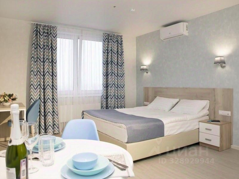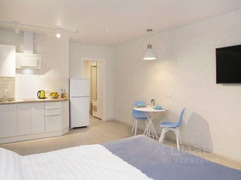 Небольшая студия оснащена всем необходимым для комфортного проживания. Бытовая техника: плазменный телевизор, холодильник, микроволновая печь, электрочайник, плита, фен, стиральная машина. Есть вся необходимая посуда для приготовления еды и другие приятные мелочи. В стоимость проживания входит безлимитный высокоскоростной интернет, белоснежные комплекты белья и полотенец из натурального хлопка, а также гигиенические принадлежности.