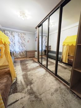 •Комната 1 - двуспальный диван, большой комод, очень большой шкаф купе, два стола, косметический столик с гримерным зеркалом.