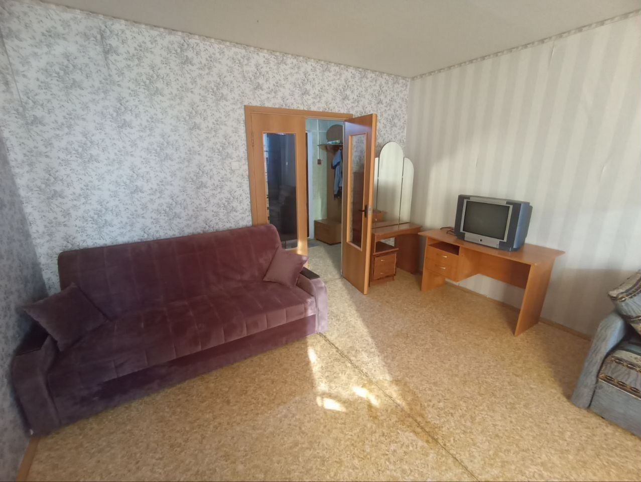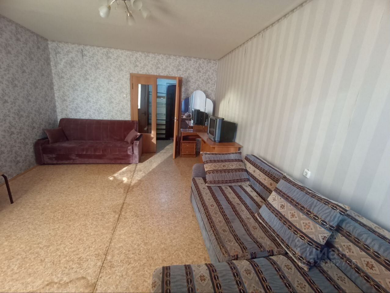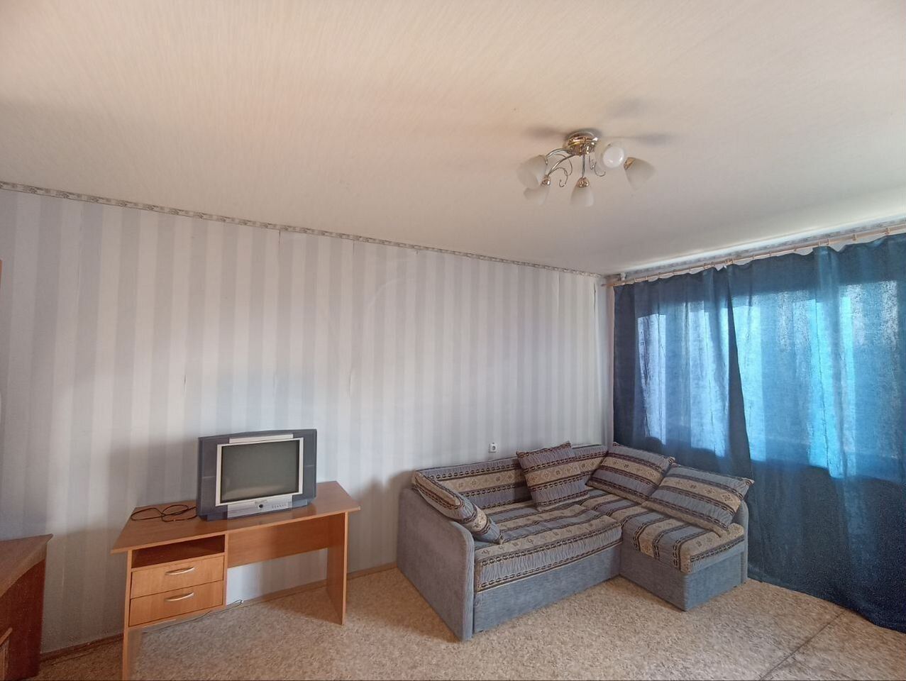 В квартире выполнен косметический ремонт. Просторная комната оборудована шкафами и диванами, что позволяет комфортно разместить до четырех человек. Из бытовой техники имеется холодильник. Для развлечений доступно кабельное/цифровое ТВ.