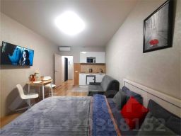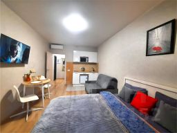 Светлая студия в новом доме. В студии с комфортом могут разместиться до 4 гостей, предусмотрена двуспальная кровать и раскладной диван.