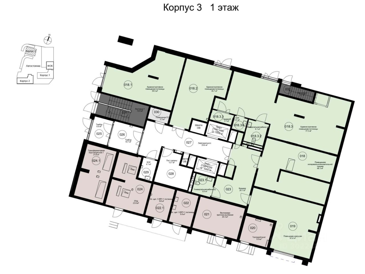 Лот 2: Площадь 89 кв. м (помещения 018.3, 018.3.1, 018.3.2, 018.3.3). Имеет отдельный вход с улицы.