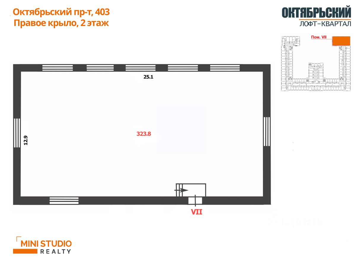 Помещение площадью 323,8 кв.м расположено на 2 этаже, вход с внутреннего двора